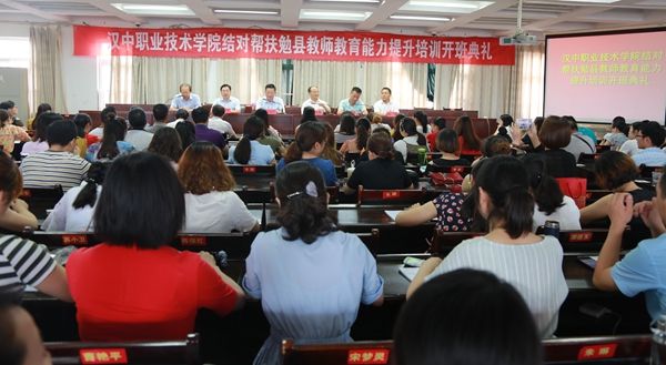 2017年7月1日,汉中职业技术学院结对帮扶勉县教师教育能力提升培训班开班,来自勉县各中小学、幼儿园的330名教师代表参加了培训。汉中职业技术学院党委副书记、工会主席、学院扶贫工作领导小组副组长赖成宣、勉县县委书记马大勇、副县长徐斌、学院继续教育与培训部主任余俊光、勉县教体局局长陈有智等出席了培训班开班仪式。